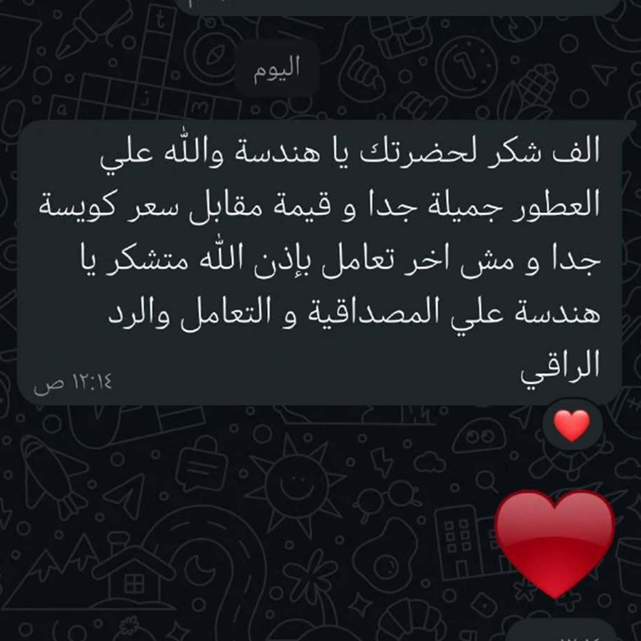 وذلك لاستخدام اجود انواع الكحول الطبي الذي يساعد في عملية تركيز وثبات العطر يدوم لاطول فترة ممكنةمحمد - التجمع